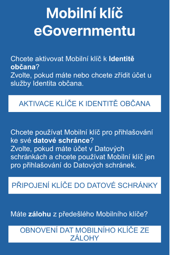 Otevřete aplikaci v mobilu a zvolte: AKTIVACE KLÍČE K IDENTITĚ OBČANA.