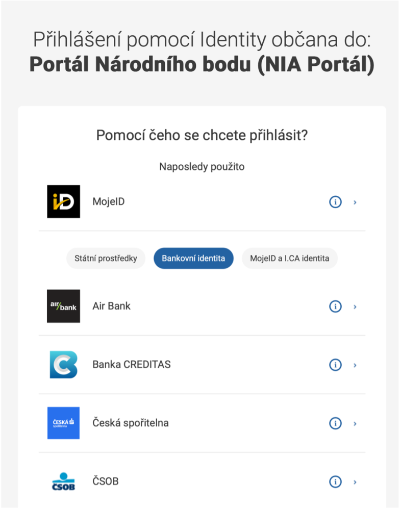Účet MojeID si můžete propojit s Identitou občana online (např. opět přes bankovní identitu).